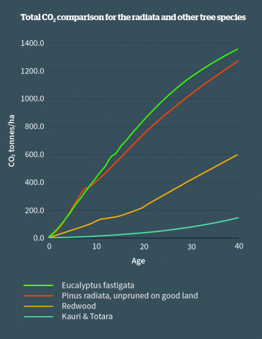 They are much slower to grow to a harvestable size than, for example, radiata pine. Their carbon lock-up rate is also much slower.