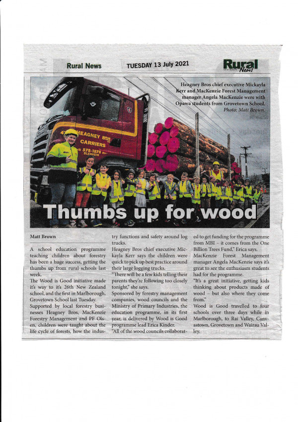 A school education programme teaching children about forestry has been a huge success, getting the thumbs up from rural schools via the 'Wood is Good' initiative, as noted in an article in Rural News by Matt Brown.